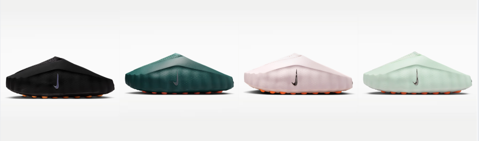 This time around, the aesthetic is just as sharp as the science. The Mind Slide 001 gets a hit of seasonal energy with ‘Mint Green’, ‘Soft Pink’, and a deep ‘Forest Green’. All three sit atop those signature orange pods with a clean silver mini Swoosh on the side as well as the upper to finish. We also get a clean black version again.