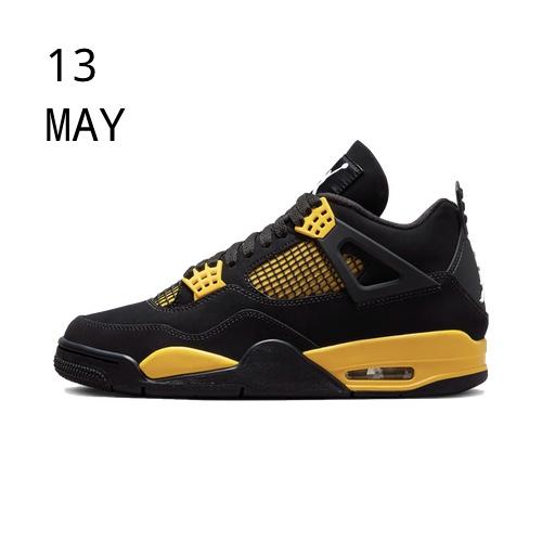 The NIKE AIR JORDAN 4 THUNDER brings another heavyweight retro colourway of the Jumpman’s fourth signature model. This slick Thunder retro features black nubuck uppers with elevating pops of yellow appearing throughout to create a bold statement that draws the same bold colour-blocking from its 2006 and 2012 releases. Contrasting white Jumpman logos appear on the tongues and back heels, rounding off a truly strong colourway. If you managed to scoop the Red Thunder back in 2021 then this bad boy needs to be sitting alongside them. Just saying…